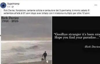 (Adnkronos) - L'annuncio della band. Davies è stato l'unico membro stabile dalla fondazione nel 1969 fino all'ultima esibizione dal vivo nel 2022