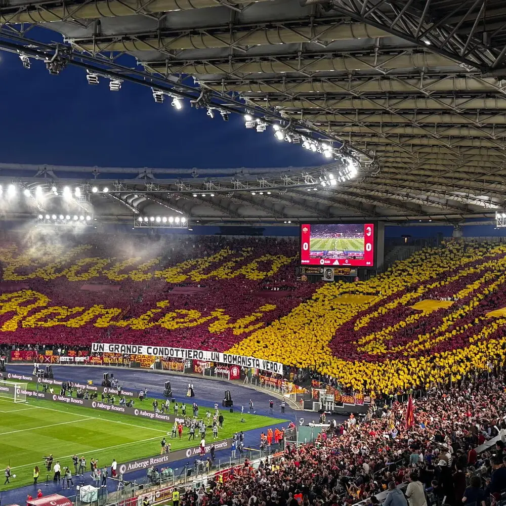 AGI - Lo stadio Olimpico saluta Claudio Ranieri. L'allenatore giallorosso siede per l'ultima volta in panchina nello stadio della sua città e i cori sono tutti per lui. La Curva Sud realizza per la sua ultima gara all'Olimpico una scenografia speciale con Claudio Ranieri scritto in giallorosso e uno striscione che recita: "Un grande condottiero... Un romanista vero!". E sul campo sembra che i suoi ragazzi vogliano partecipare alla festa: dopo due minuti Gianluca Mancini porta la Roma in vantaggio con un colpo di testa su calcio d'angolo di Soule'. Dichiarazioni di Claudio Ranieri "Sessanta anni fa ero in mezzo a voi, vi avevo chiesto aiuto perché potevamo fare qualche cosa di buono. Vi ringrazio, manca l'ultimo passo domenica o giovedì. Sono orgoglioso di questi ragazzi, mi hanno seguito dal primo giorno. Ma la cosa più importante è che voi avete capito che avevamo bisogno da subito del vostro infinito amore. Grazie, infinite grazie". Lo ha detto Claudio Ranieri, allenatore della Roma, salutando i tifosi dopo l'incontro fra Roma e Milan. Quella di stasera è stata l'ultima partita all'Olimpico con la Roma. Smetterà di allenare dopo il match dei giallorossi contro il Torino, ultima partita di campionato. Ranieri, commosso, ha fatto un giro di campo salutando i tifosi che lo hanno applaudito a lungo insieme ai nipotini e ai giocatori, sulle note della canzone di De Gregori La leva calcistica del '68 e di Roma capoccia.