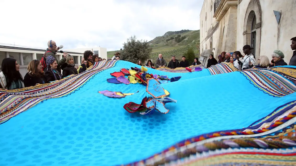 A Gibellina i migranti realizzano il grande "arazzo della pace"