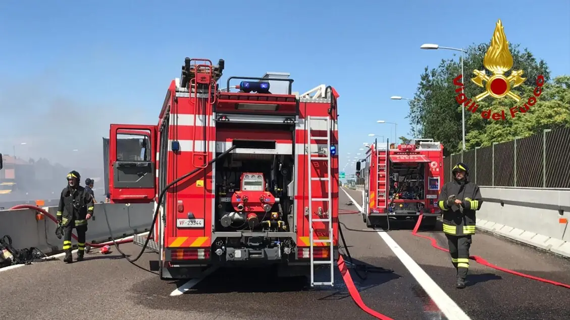 Auto in fiamme sull'A7, traffico bloccato e code