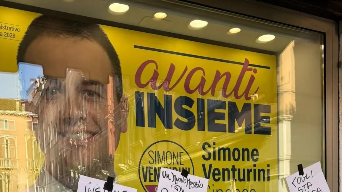 Biglietti offensivi attaccati alla sede elettorale di Venturini a Venezia
