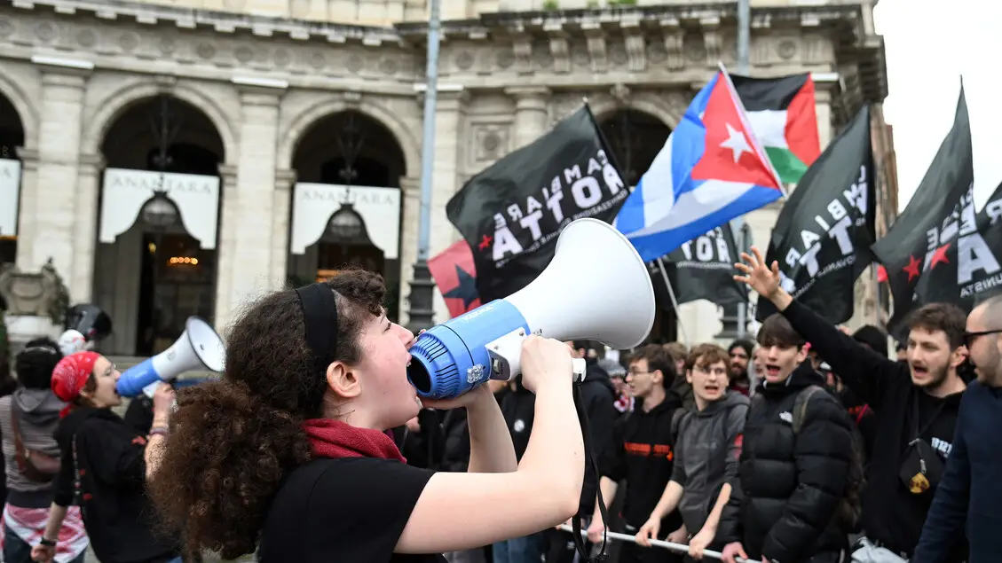 Corteo a Roma, bruciata foto di Trump e l'immagine di una bandiera Usa