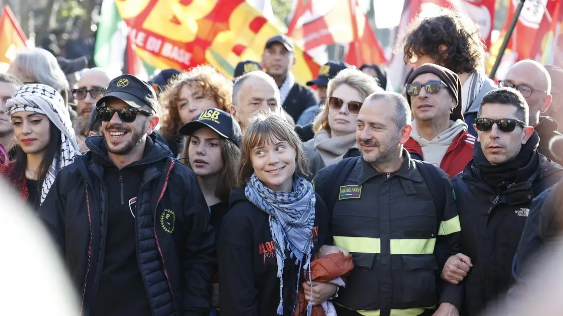 Corteo Pro Pal, a Roma Thunberg e Albanese in testa con i vigili fuoco