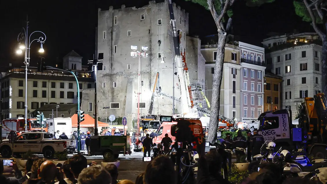 Crolli alla Torre dei Conti a Roma, un operaio sotto le macerie: si scava anche con le mani per salvarlo
