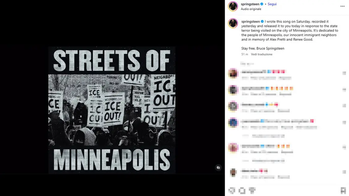 Il Boss riscrive un suo successo chiamandolo Streets of Minneapolis, star e attori prendono posizione