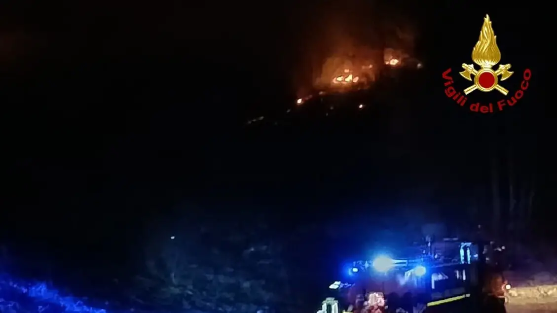 Incendio boschivo di vaste proporzioni in Friuli, vigili del fuoco al lavoro
