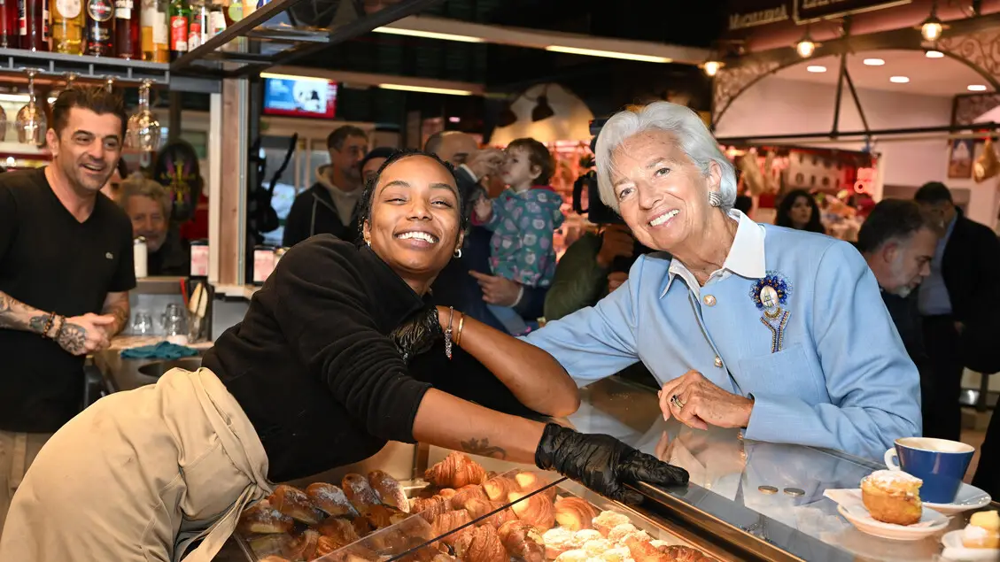 Lagarde al mercato a Firenze, tra i banchi con un occhio ai prezzi