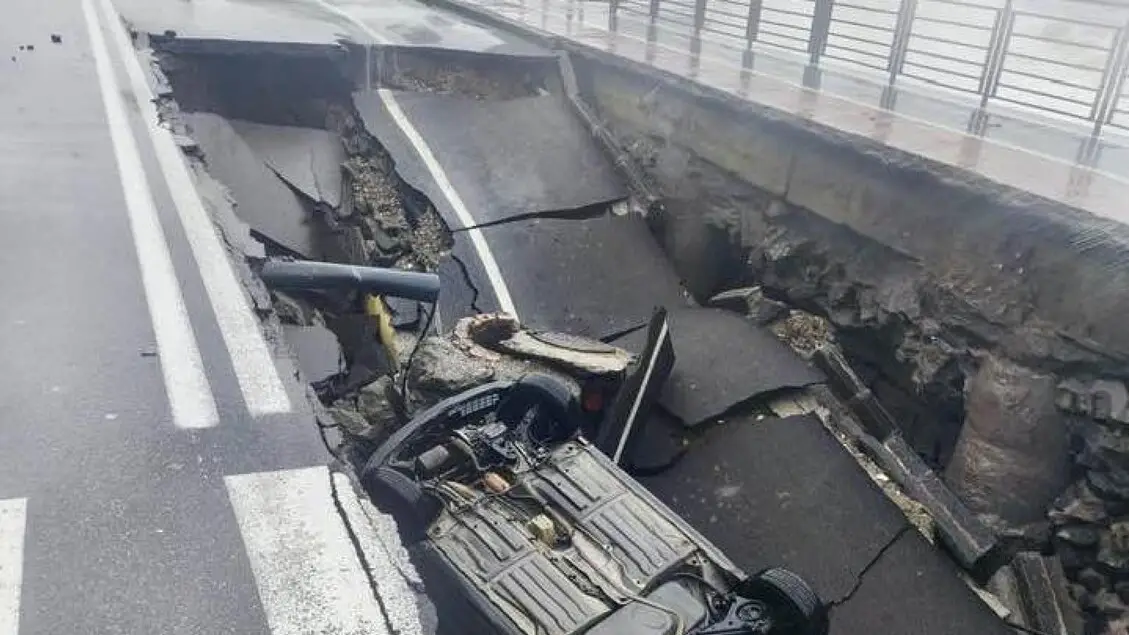 Maltempo: viola divieto e con auto precipita in voragine nel Messinese