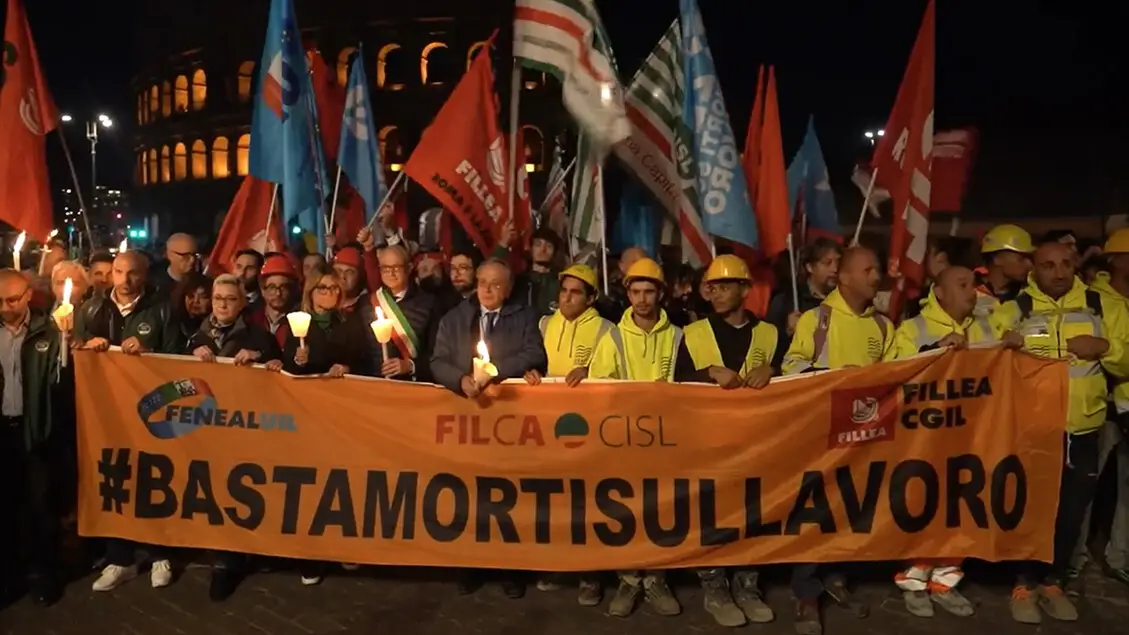 Il sindaco alla fiaccolata per l'operaio deceduto in seguito al crollo della Torre dei Conti