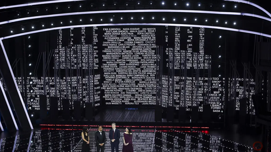 La finale si apre con una riflessione sull'Iran e un appello per i bambini. Bocelli arriva a cavallo, standing ovation all'Ariston
