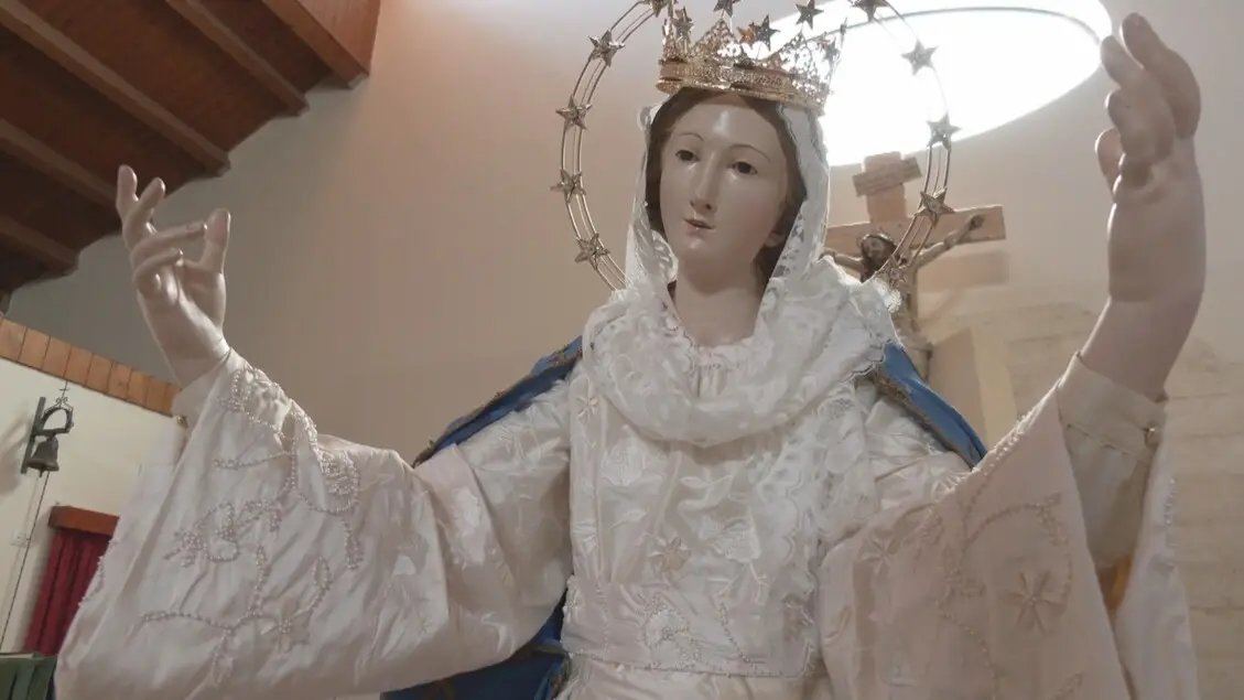 Sete, perle e sottana ricamata per parrocchia Canosa di Puglia