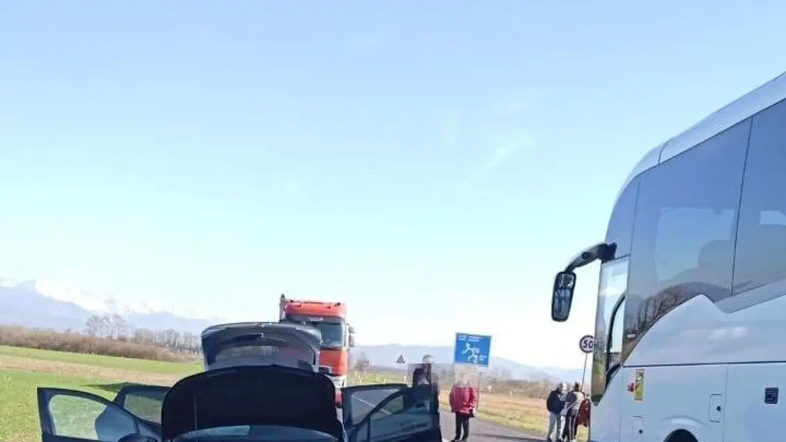 Scontro tra bus di fedeli e auto in Friuli, un ferito