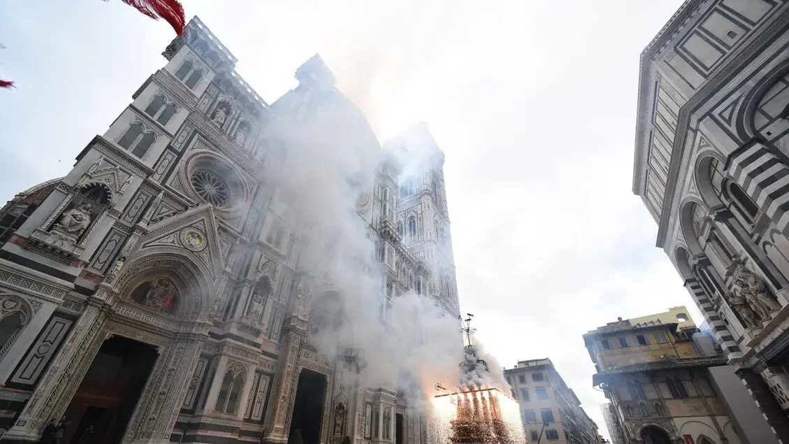 Scoppio del carro a Firenze, vola bene la 'colombina'