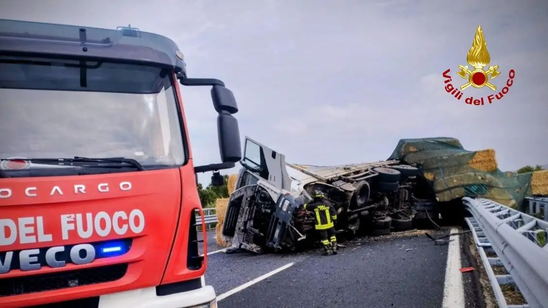 Tir carico di paglia si ribalta in A14, coda di 9 km verso Bari
