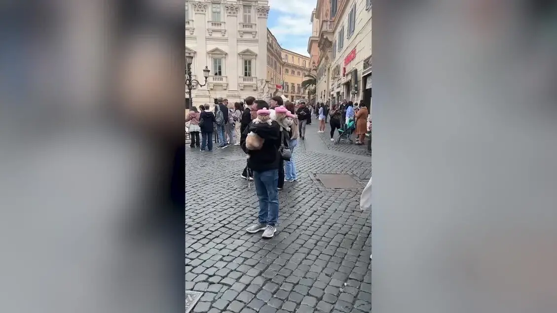 Tre gattini in rosa rubano la scena alla Fontana di Trevi