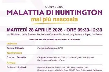 ’Malattia di Huntington: mai più nascosta”, convegno domani a Roma