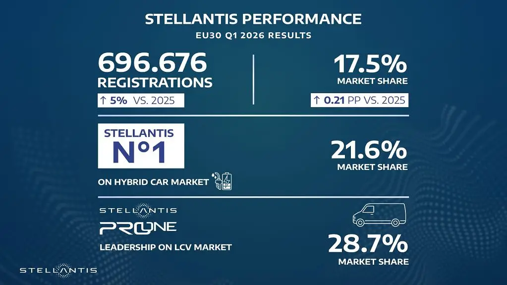 Stellantis, nel trimestre in Ue vendite su del 5% rispetto al 2025