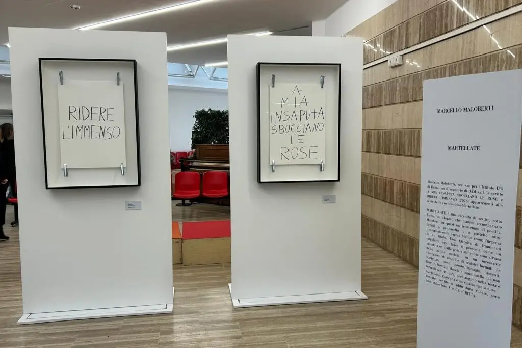 “A mia insaputa sbocciano le rose” e “Ridere l’immenso” dell'artista Marcello Maloberti campeggiano ora nell'atrio degli Ifo. Questo articolo Arte che cura: due ‘Martellate’ di Maloberti agli Ifo di Roma proviene da LaPresse