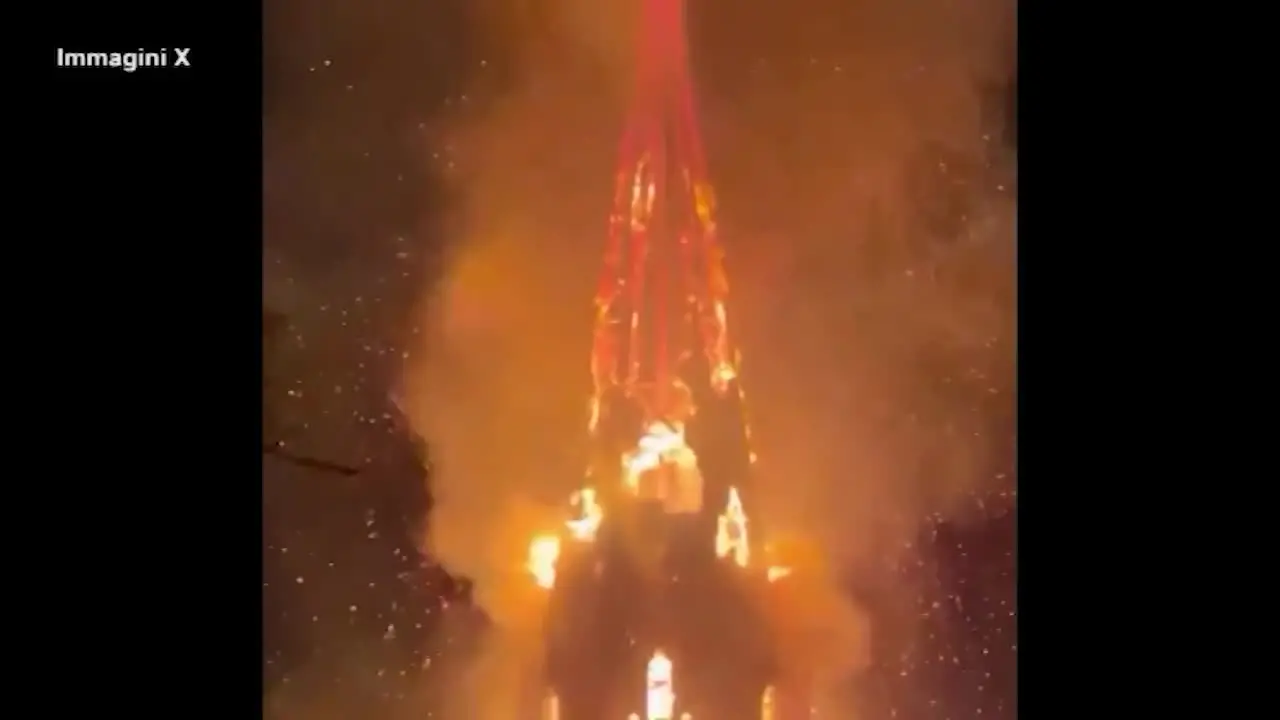 Brucia chiesa in centro ad Amsterdam: crolla il campanile