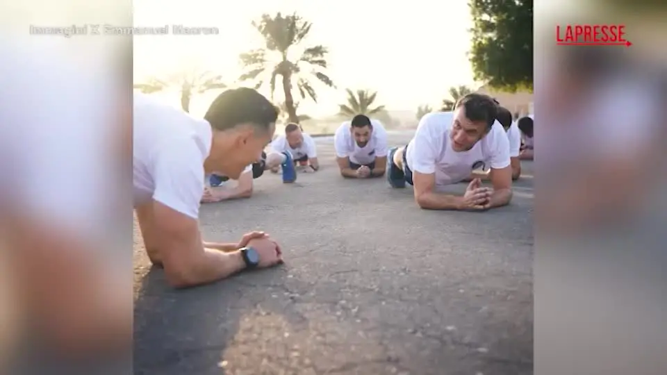 Macron, allenamento e flessioni coi militari: il video di auguri del presidente francese