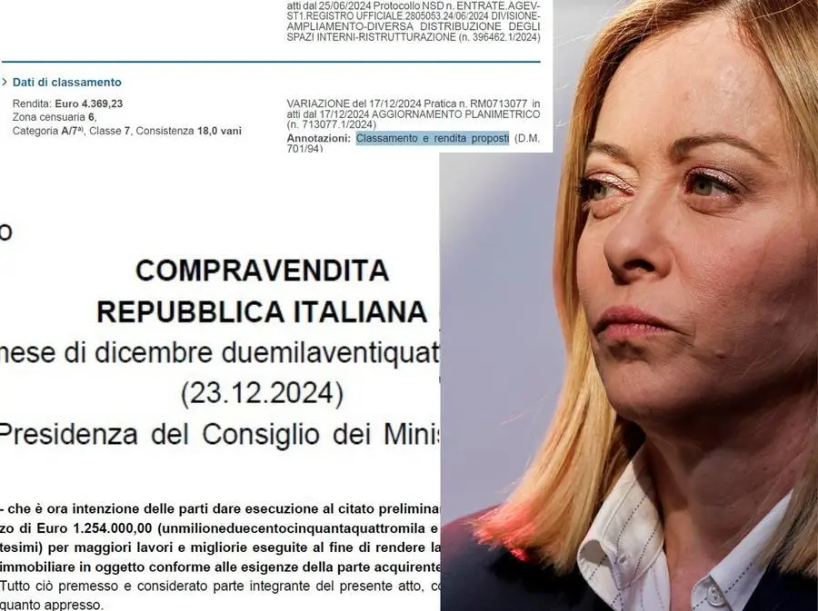 La premier ha comprato nel ’23 una casa di 400 metri accatastata A/7. La classe garantisce agevolazioni. Ma l’abitazione dovrebbe essere A/8: categoria di “lusso”. Il risparmio fiscale sarebbe di circa 70mila euro. La leader: «Accatastamenti fatti dal tecnico. sulla casa nessuna richiesta alla privacy»