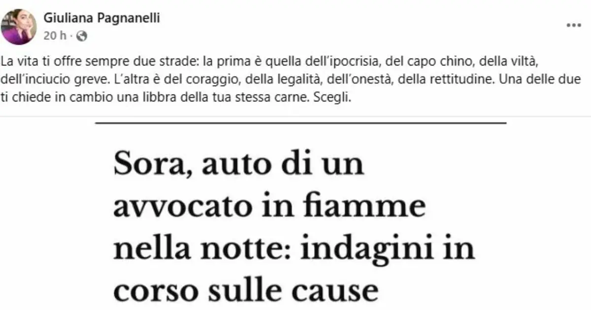 Un incendio nella notte, violento e mirato, che lascia dietro di sé più interrogativi che certezze. È quanto accaduto a Sora, dove la vettura dell’avvocata Giuliana Pagnanelli è stata completamente distrutta dalle fiamme in quello che appare come un possibile gesto intimidatorio. Il rogo è divampato poco prima delle due in via Boccaccio. A essere […] L'articolo Auto di un’avvocata di Sos Donna distrutta dalle fiamme a Sora (Frosinone): ipotesi intimidazione proviene da Il Fatto Quotidiano.