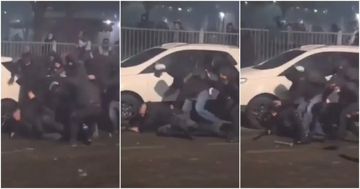 Circondato e pestato a terra un poliziotto durante gli scontri a Torino: colpito anche con un martello. Il video