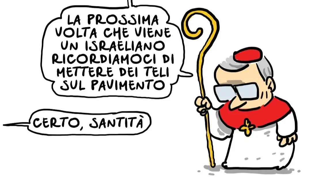 Ora c’è da smacchiare – la mia vignetta per Il Fatto Quotidiano oggi in edicola #israele #vaticano #papa #vignetta #fumetto #memeitaliani #umorismo #satirapolitica #satira #humor #natangelo L'articolo Due teli proviene da Il Fatto Quotidiano.