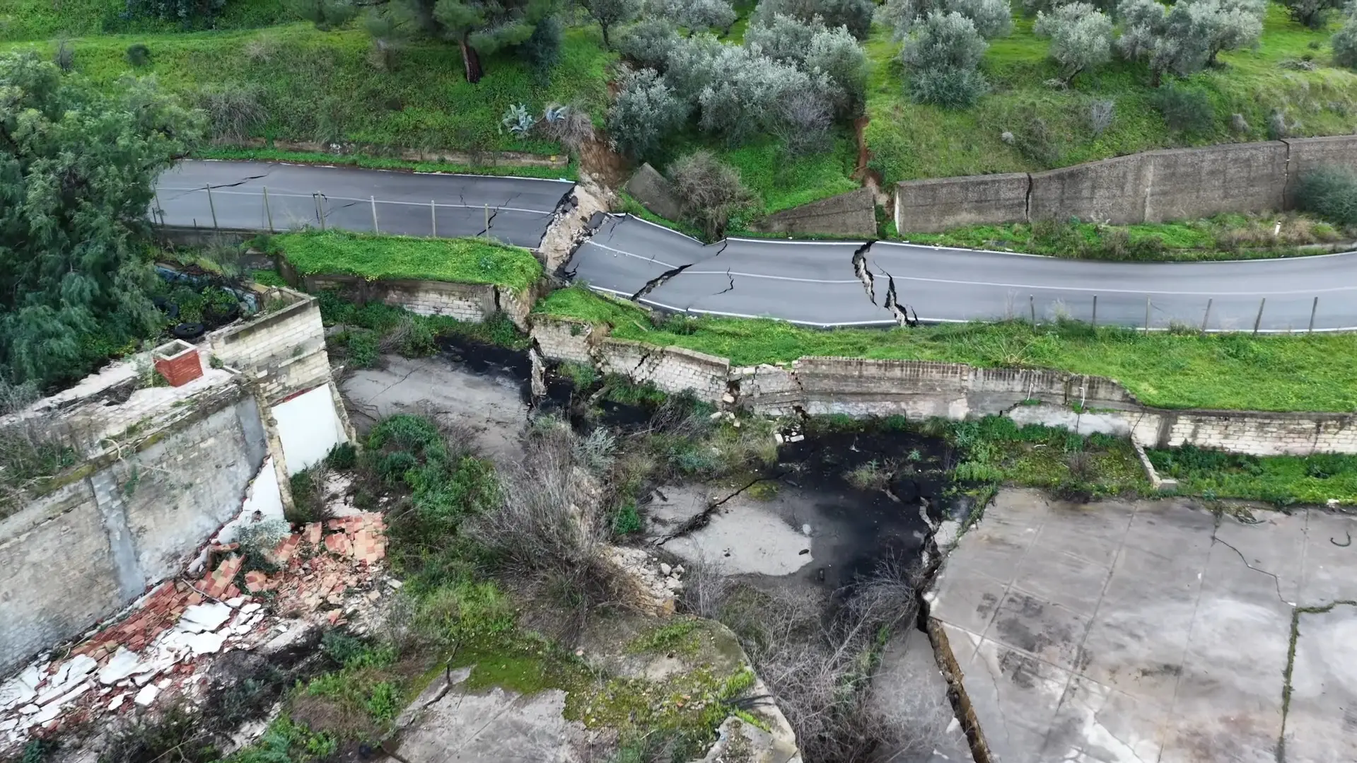 Frana a Niscemi, spaccata in più punti la strada che porta a Gela: il video dal drone