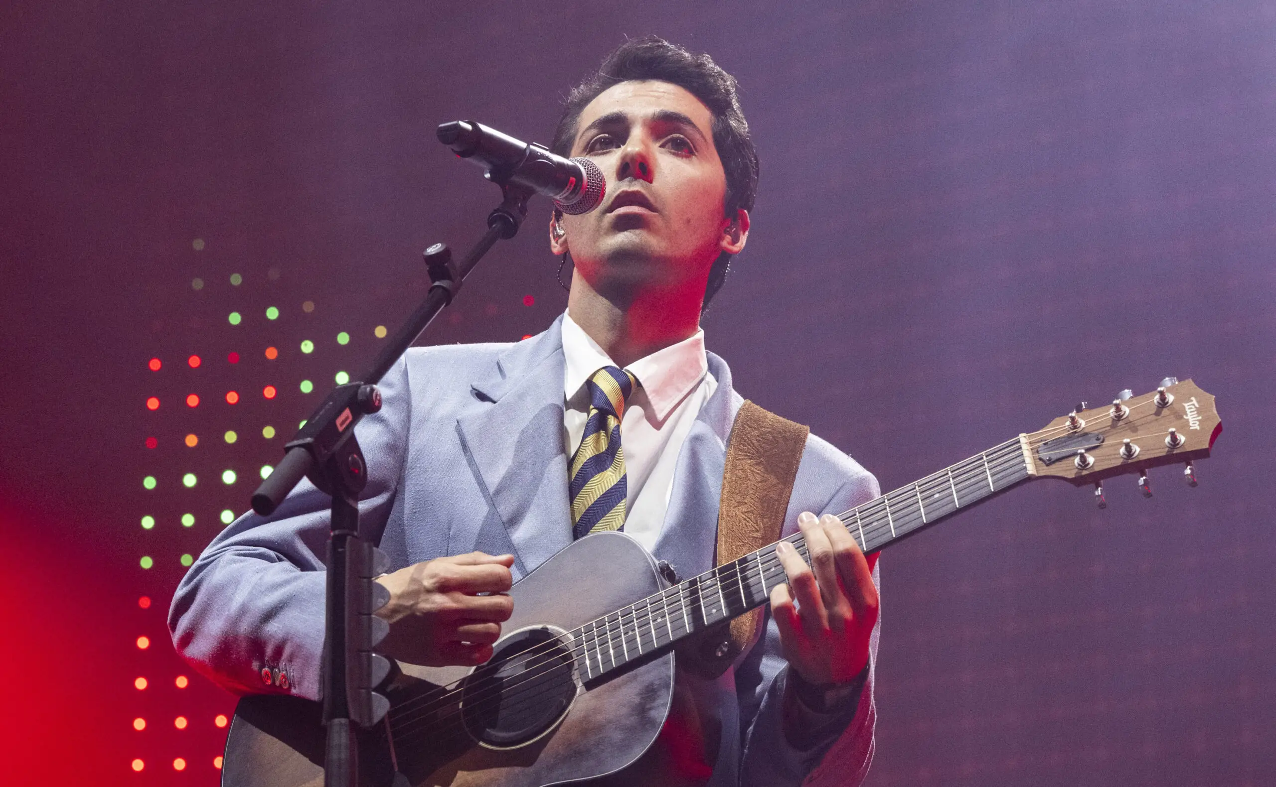 Fulminacci a Milano è una mosca bianca elegante: nessun ospite al concerto, giacca e cravatta, grafiche minimal Anni 90, tanta musica suonata e l’amore per “le premure, le seccature, la parola schiscetta e le fatture”