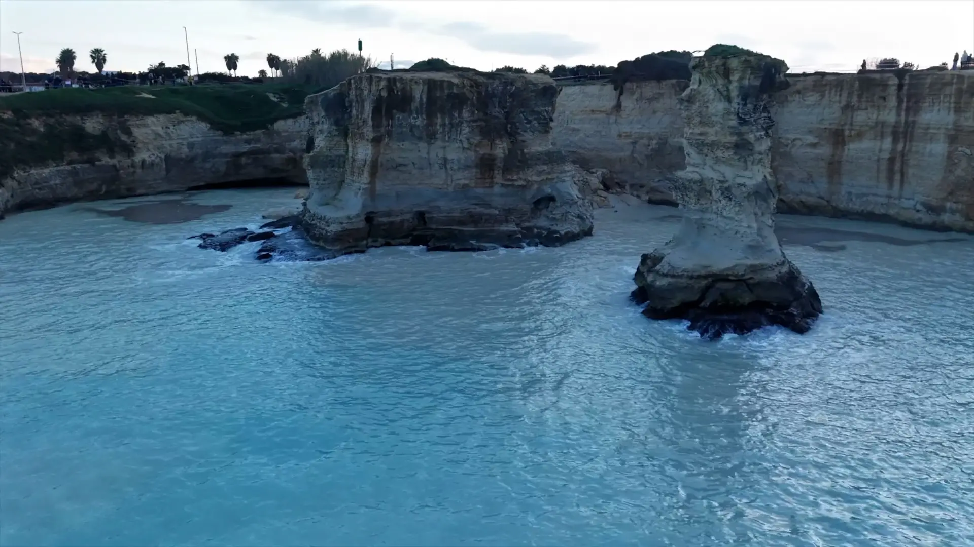 Il drone in volo sopra l’arco dei faraglioni di Sant’Andrea franato in mare: cosa resta del simbolo del Salento – Video