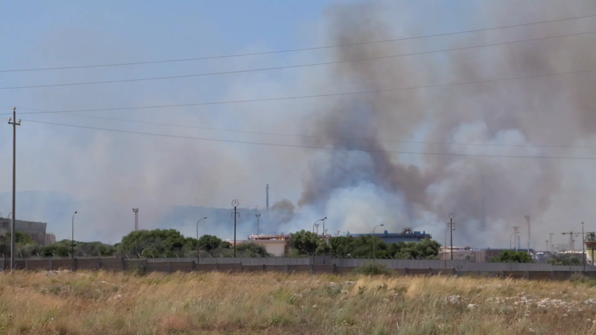 Incendio a Siracusa vicino agli impianti Isab-Erg: elicotteri in azione per spegnere il rogo – Video