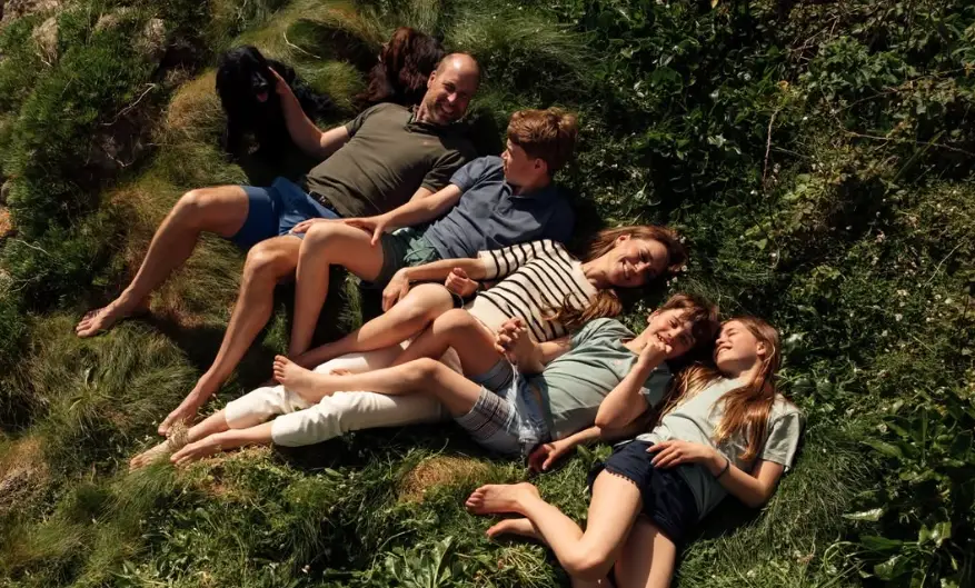 La foto che celebra i 15 anni di matrimonio tra il principe William e Kate Middleton: insieme sull’erbe, con i figli e il cane Orla