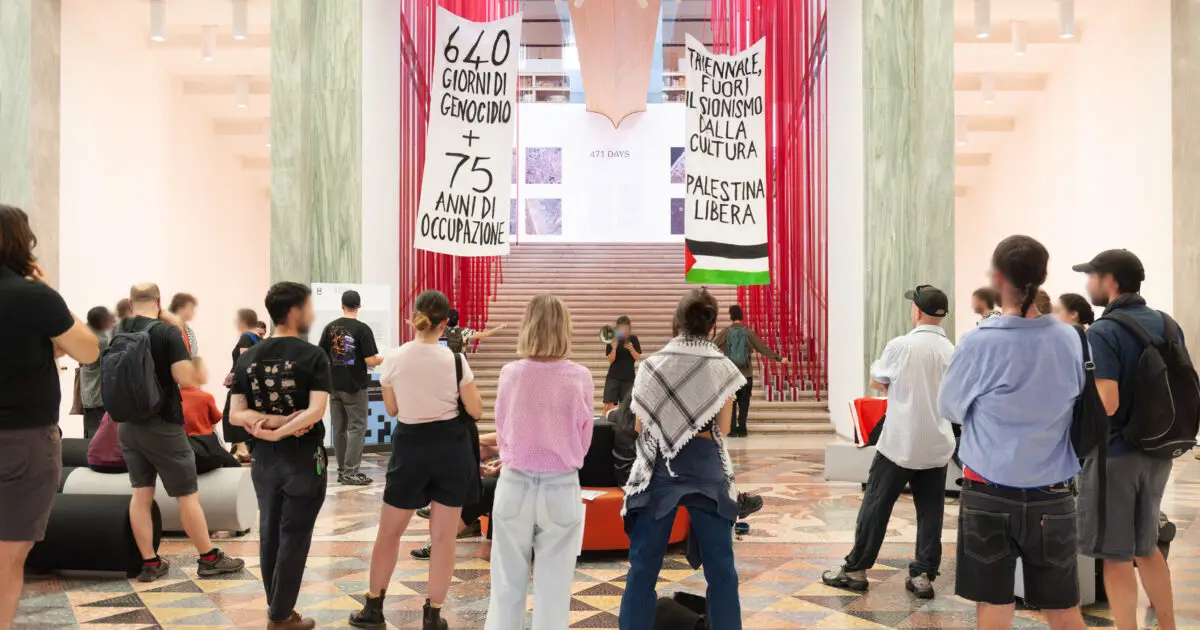 “Fuori il sionismo dalla cultura”: il blitz del collettivo Galassia in Triennale a Milano