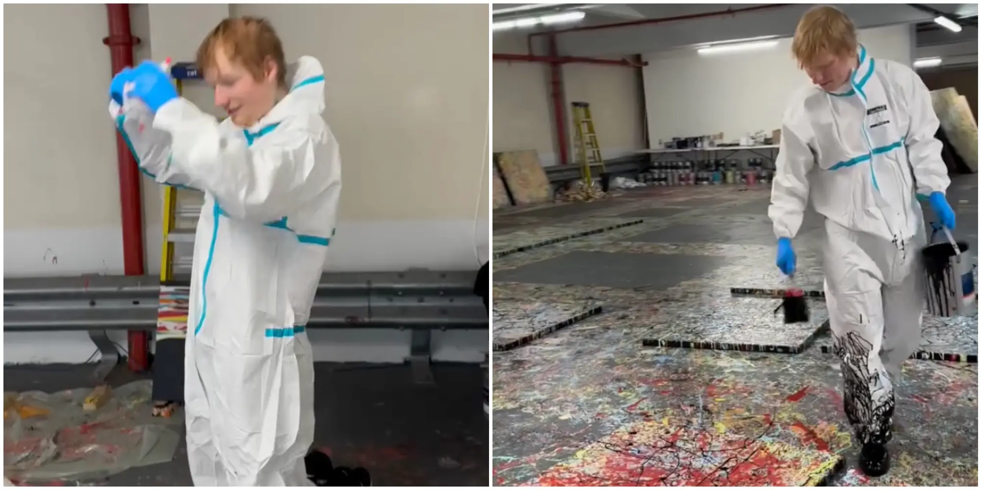 “Intrugli senza senso che sfuggono a un’analisi accurata. Omaggia Pollock, ma non ha sentimento né verità”: il The Guardian stronca Ed Sheeran pittore