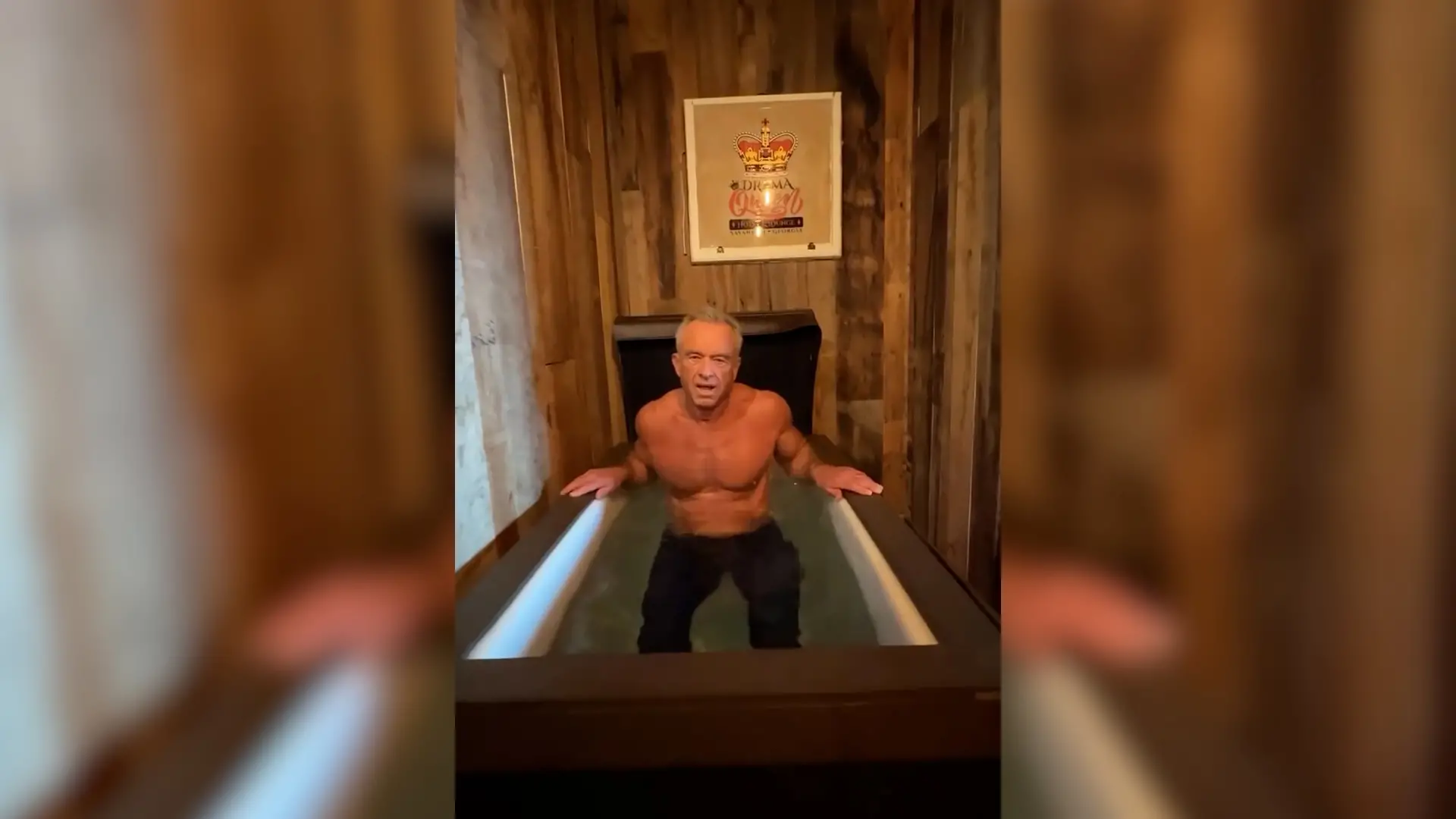L’allenamento di Robert Kennedy Jr.: pedala in sauna poi si immerge (con i jeans) in una vasca di acqua gelata – Video