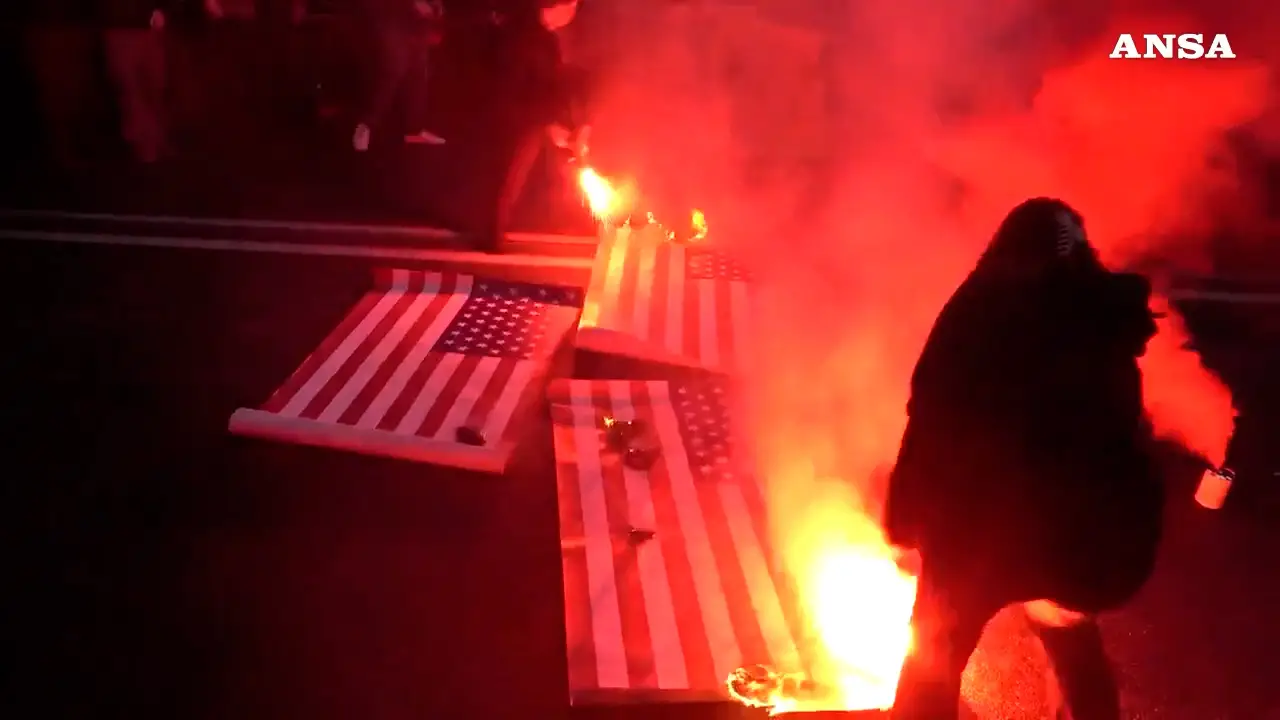 Manifestazione per il Venezuela a Roma, bruciate bandiere Usa. In collegamento il figlio di Maduro: “Lo riporteremo a casa”