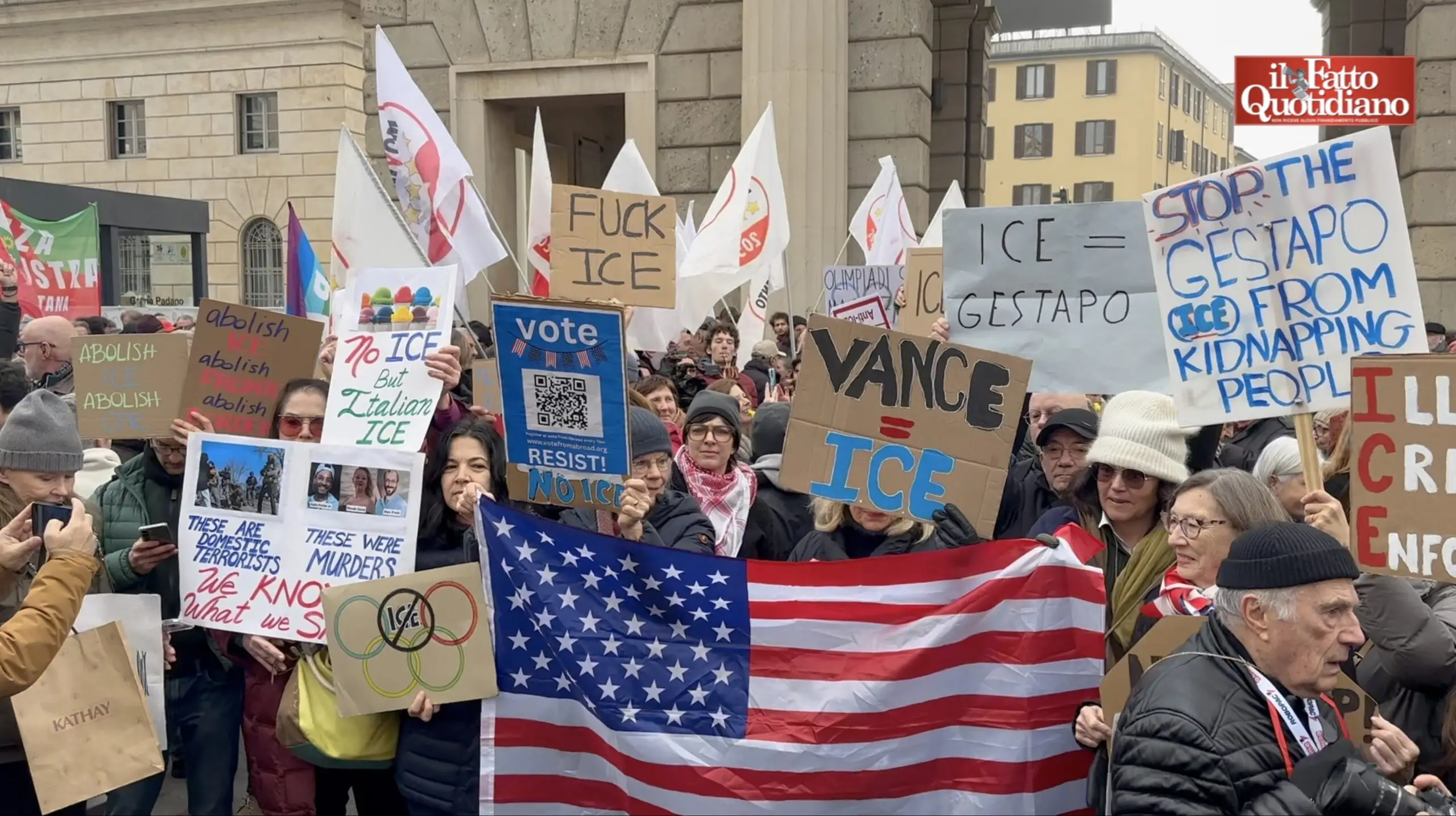 A Milano almeno mille persone sono scese in piazza per protestare contro la presenza degli agenti dell’Ice alle Olimpiadi Milano-Cortina. “Oggi Milano dimostra che le barbarie del mondo non possono fare rima con le Olimpiadi” ha detto il segretario del Pd di Milano Alessandro Cappelli, tra i promotori del flash mob insieme a sindacati e […] L'articolo Milano in piazza contro l’Ice di Trump ai Giochi invernali: “La barbarie non può far rima con le Olimpiadi”. E a manifestare anche cittadini Usa: “Una vergogna” proviene da Il Fatto Quotidiano.