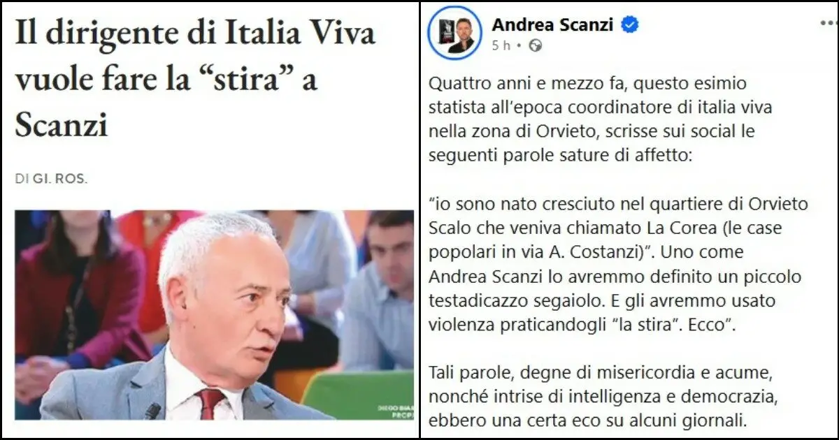 Post di insulti contro Andrea Scanzi: dirigente toscano di Italia Viva costretto a risarcirlo