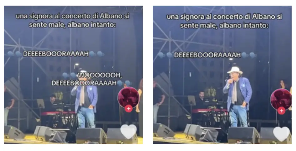 Sviene al concerto di Al Bano, lui tenta di ‘rianimarla’ con una serie di acuti: “Deborah! Svegliati, vieni qui!”