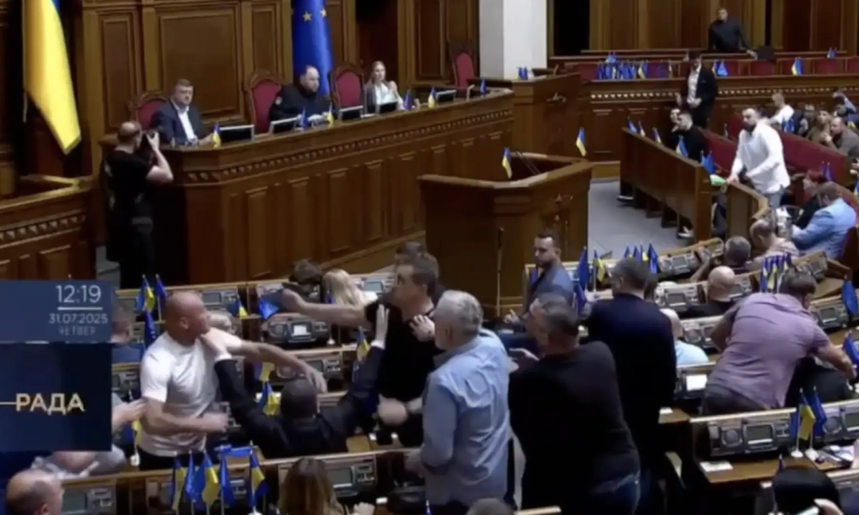 Al Parlamento ucraino, prima del voto sul disegno di legge anticorruzione, c’è stata una zuffa tra due deputati, come si vede in un video pubblicato da alcuni media internazionali tra cui il Telegraph. Nelle immagini si vedono i due mentre si schiaffeggiano. Gli altri parlamentari presenti sono poi intervenuti per separarli. La Verkhovna Rada oggi […] L'articolo Ucraina, volano schiaffi in Parlamento prima del voto sulla legge anticorruzione: il video della zuffa proviene da Il Fatto Quotidiano.