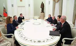 Legami, sorrisi e appunti attorno al tavolo dei negoziati al Cremlino