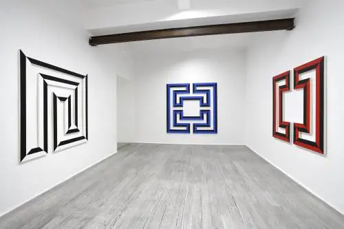 La galleria Poggiali presenta una mostra antologica dell'artista svizzero: le sue tele geometriche creano ambienti che superano il confine della bidimensionalità