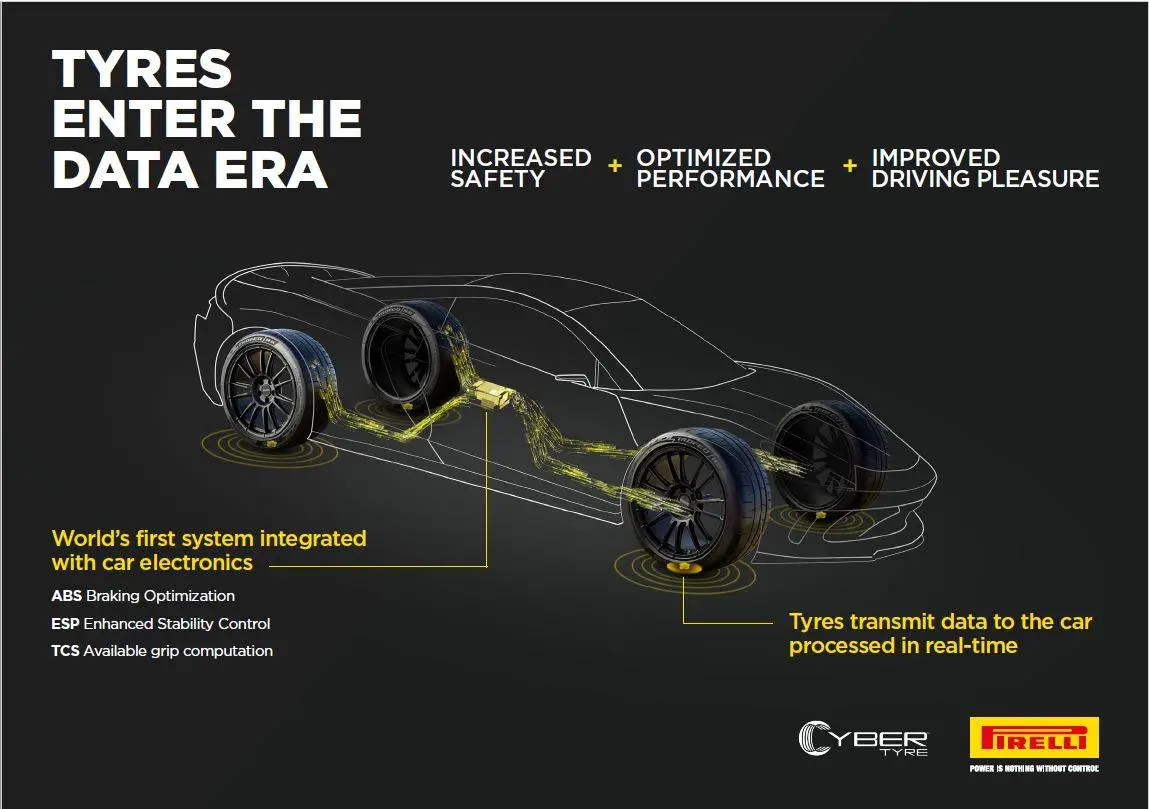 Cyber™ Tyre è il primo sistema intelligente che sfrutta sia i dati hardware che quelli software per ottimizzare le prestazioni di guida e del veicolo, grazie agli algoritmi personalizzati di Pirelli
