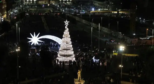 Napoli si illumina per il Natale, accese le magiche luminarie in piazza Municipio