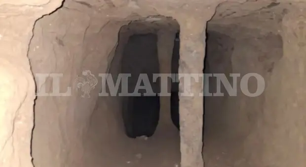 Ecco le immagini del tunnel scavato dai rapinatori per accedere al caveau della filiale bancaria della Credit Agricole di piazza Medaglie d?Oro. Il cunicolo, probabilmente scavato nel...