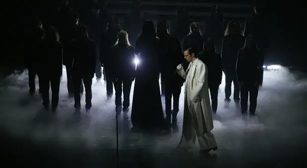 Achille Lauro, lacrime a Sanremo per l'omaggio ai ragazzi di Crans Montana: «Spero la mia musica abbia confortato»