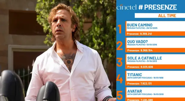 Record dopo record, Buen Camino entra a titolo definitivo nella storia del cinema italiano. Il film di Checco Zalone ha portato in sala 9.369.241 spettatori ed è il film più visto...
