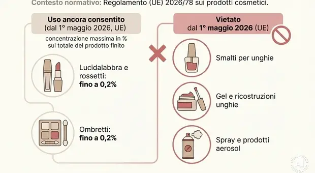 Cosmetici, dal 1° maggio 2026 vietati smalti e gel glitterati: nuove regole per profumi, shampoo, dentifrici e spray. Cosa cambia per consumatori ed estetisti