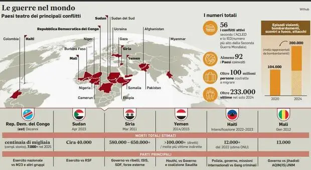 Guerre nel mondo, i 56 conflitti che infiammano il pianeta: dalla Cambogia e Thailandia al Sudan, ecco i Paesi a rischio